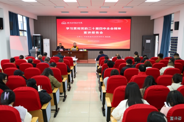 (通讯员 李悦 陈洋)12月5日,我校举行学习贯彻党的二十届四中全会精神专题宣讲报告会,中共常德市委党校副校长、市委宣讲团成员杨亚妮副教授作专题辅导。党委书记、督导专员乔臣等校领导出席宣讲会,党委副书记、纪委书记严曙光担任主持人。