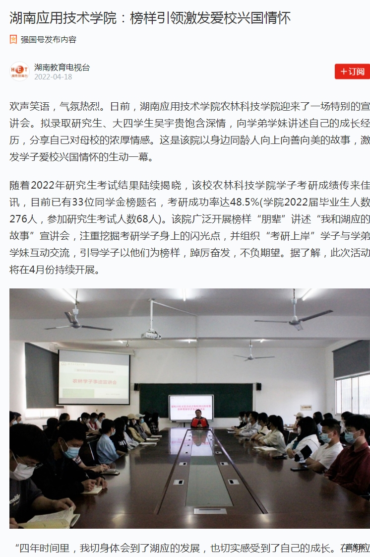 学习强国平台 | 湖南应用技术学院:榜样引领激发爱校兴国情怀